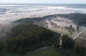 Виды Новосибирска и Новосибирской области. Жанровая фотография. Автомобили на дороге в тумане.