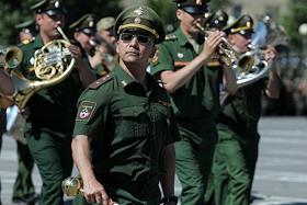 Репетиция Парада Победы, посвященного 75-годовщине Победы в Великой Отечественной войне. Жанровая фотография. Дирижер военного оркестра во время репетиции.
