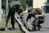 Репетиция Парада Победы, посвященного 75-годовщине Победы в Великой Отечественной войне. Жанровая фотография. Военнослужащие в медицинских масках готовятся к проведению репетиции парада. Чистка обуви.