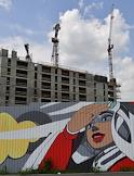 Виды Москвы. Жанровая фотография. Новостройки города. Строительная площадка жилого комплекса в районе Тушино.