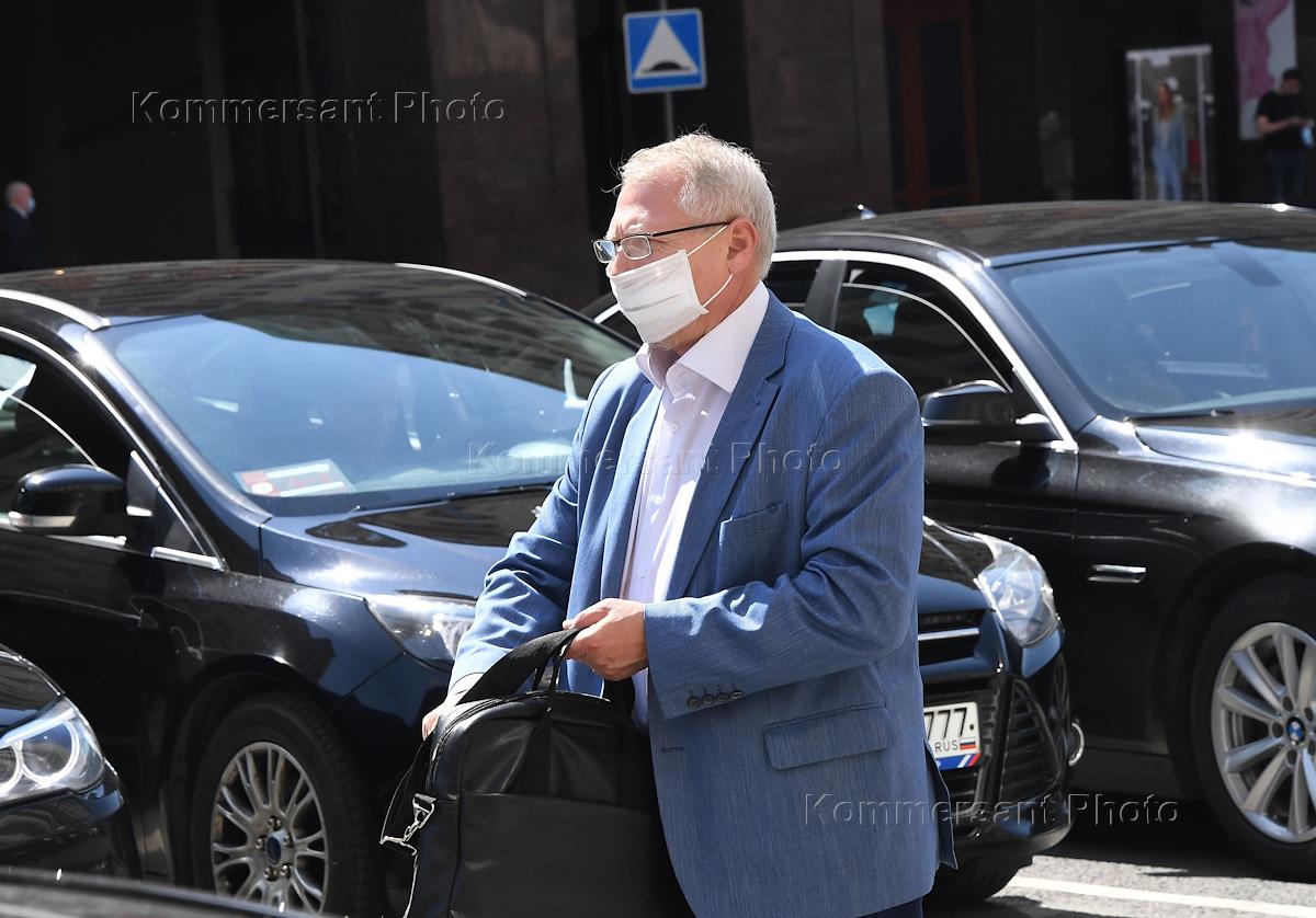 Меры предосторожности из-за угрозы распространения коронавирусной инфекции COVID-19. Прибытие депутатов Государственной думы (ГД) России на пленарное заседание. Председатель комитета ГД по транспорту и строительству Евгений Москвичев перед началом заседания.