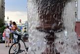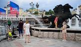 Отмена режима самоизоляции из-за опасности распространения коронавирусной инфекции COVID-19 в Москве. Жанровая фотография. Туристы у фонтана "Четыре времени года" на Манежной площади.