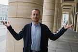 Member of the Management Board of Residence Management Company Konstantin Obraztsov speaks during an interview.