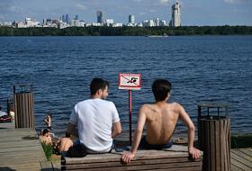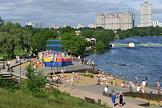 Москва после отмены режима самоизоляции из-за опасности распространения коронавирусной инфекции COVID-19. Жанровая фотография. Пляжи Строгино. Живописный мост. Отдых на Москве-реке.