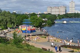 Москва после отмены режима самоизоляции из-за опасности распространения коронавирусной инфекции COVID-19. Жанровая фотография. Пляжи Строгино. Живописный мост. Отдых на Москве-реке.