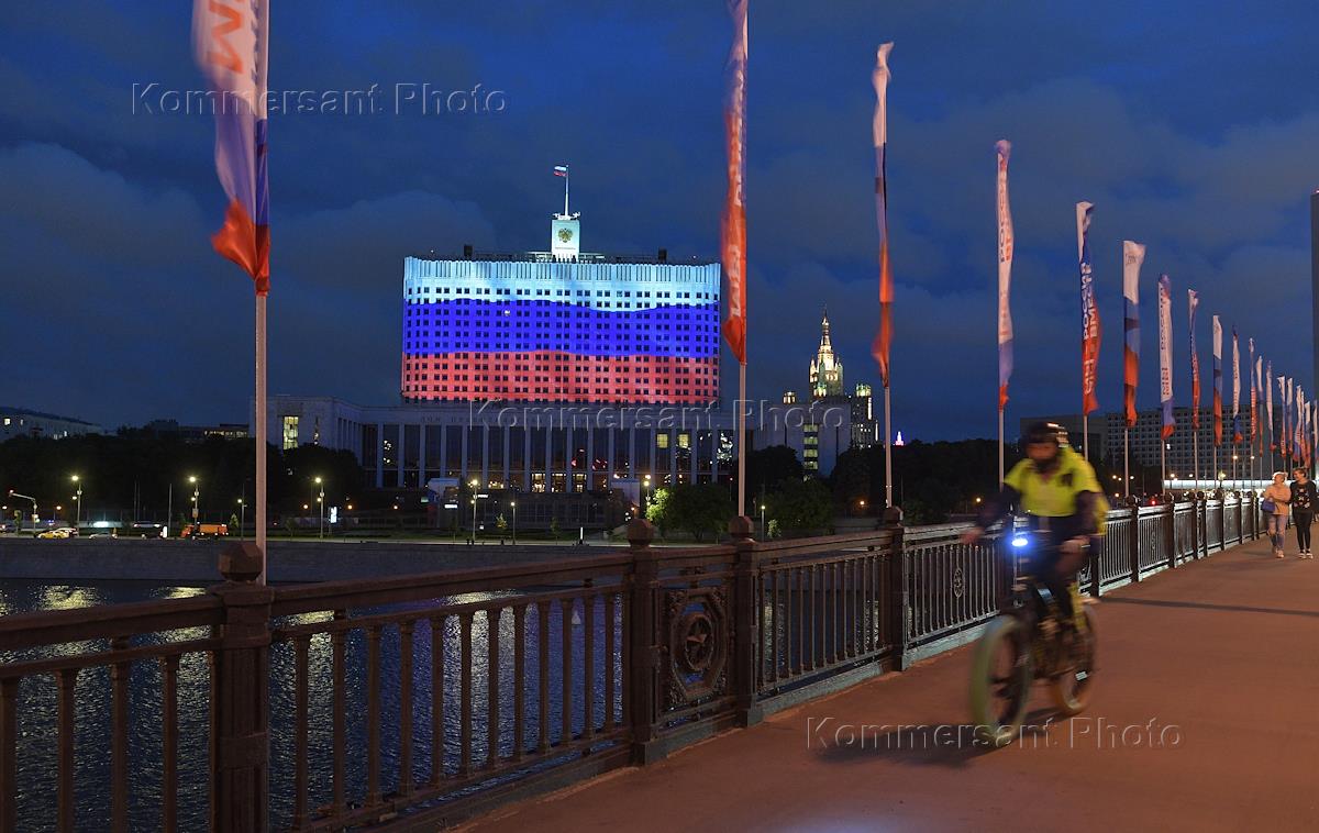 Мультимедийная инсталляция ко Дню России на здании Дома правительства России с поздравлением и благодарностью профессионалам, поддерживающим ритм жизни страны во время пандемии коронавирусной инфекции COVID-19.