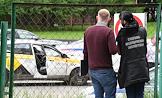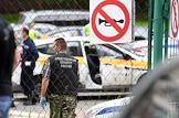 Сотрудники полиции на месте стрельбы на Ленинском проспекте, которую устроил неизвестный мужчина по полицейским. В результате инцидента ранены двое сотрудников полиции и сам стрелявший.