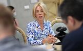 Совместное заседание рабочей группы Общественной палаты (ОП) России по защите прав пользователей сети интернет, развитию и обеспечению безопасности интернета, и рабочей группы по общественному контролю за голосованием. Заседание прошло в ОП России. Директор Ассоциации участников рынка интернет-индустрии "Лига Безопасного Интернета" Екатерина Мизулина во время совещания.