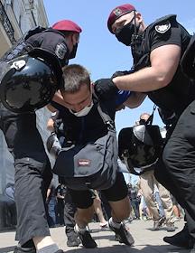 Митинг "Партии Шария" прошел у офиса президента Украины. Сотрудники полиции во время задержания представителей националистических партий, напавших на колонну "Партии Шария".