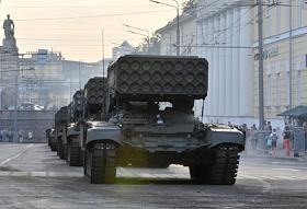 Репетиция Парада Победы. Проход техники в районе Красной пресни.