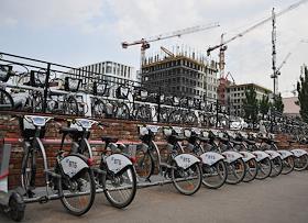 Genre photo. Bikesharing point. VTB Bank Advertising.