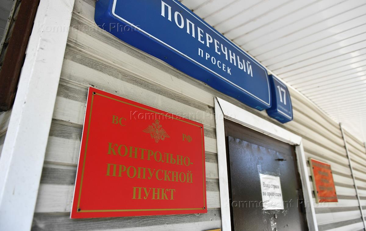 Genre photo. Metro employee with camcorder wearing face mask stand by the turnstiles on the station. The inscription on the badge reading: "CCTV in operation."