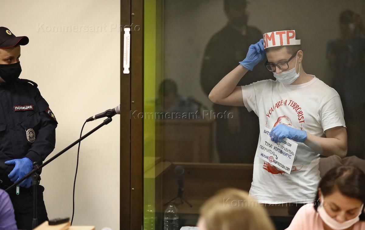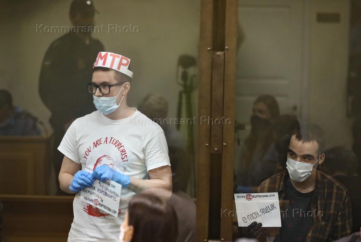 Очередное заседание Первого Западного окружного военного суда в рамках рассмотрения уголовного дела в отношении Юлия Бояршинова (справа) и Виктора Филинкова (слева), обвиняемых по ч. 2 ст. 205.4 УК РФ "Организация террористического сообщества и участие в нем" (Сеть). Последнее слово обвиняемых.