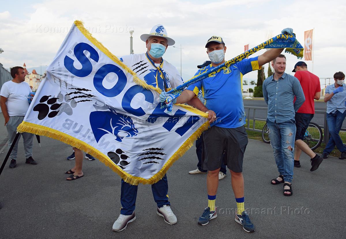 Российская Премьер-лига по футболу. 23-й тур. Матч между командами "Сочи" (Сочи) - "Ростов" (Ростов-на-Дону) на стадионе "Фишт". Болельщики перед началом матча.