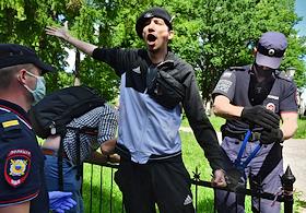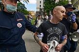 Обстановка у Первого Западного окружного военного суда во время оглашения приговора Юлию Бояршинову и Виктору Филинкову, обвиняемым по ч. 2 ст. 205.4 УК РФ "Организация террористического сообщества и участие в нем" (Сеть). Сотрудники полиции во время задержания активистов у здания суда. Акционист Павел Крисевич во время задержания.