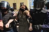 Обстановка около Первого Западного окружного военного суда во время оглашения приговора Юлию Бояршинову и Виктору Филинкову, обвиняемым по ч. 2 ст. 205.4 УК РФ "Организация террористического сообщества и участие в нем" (Сеть). Сотрудники полиции во время задержания активиста у здания суда.