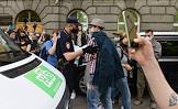 Обстановка у Первого Западного окружного военного суда во время оглашения приговора Юлию Бояршинову и Виктору Филинкову, обвиняемым по ч. 2 ст. 205.4 УК РФ "Организация террористического сообщества и участие в нем" (Сеть). Сотрудники полиции во время задержания активистов у здания суда.