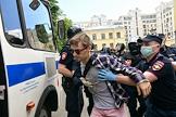 Обстановка около Первого Западного окружного военного суда во время оглашения приговора Юлию Бояршинову и Виктору Филинкову, обвиняемым по ч. 2 ст. 205.4 УК РФ "Организация террористического сообщества и участие в нем" (Сеть). Сотрудники полиции во время задержания активистов у здания суда.
