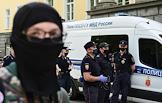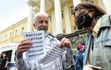 Обстановка около Первого Западного окружного военного суда во время оглашения приговора Юлию Бояршинову и Виктору Филинкову, обвиняемым по ч. 2 ст. 205.4 УК РФ "Организация террористического сообщества и участие в нем" (Сеть). Активист позирует у здания суда в маске с надписью "Свободу политзаключенным".