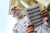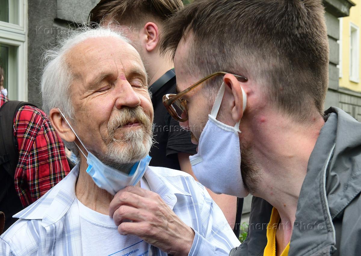 Обстановка около Первого Западного окружного военного суда во время оглашения приговора Юлию Бояршинову и Виктору Филинкову, обвиняемым по ч. 2 ст. 205.4 УК РФ "Организация террористического сообщества и участие в нем" (Сеть). Отец Юлия Бояршинова Николай Бояршинов у здания суда.