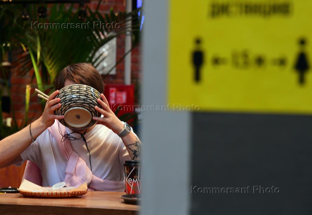 Москва во время отмены режима самоизоляции из-за угрозы распространения коронавирусной инфекции COVID-19. Возобновление работы ресторанов после отмены режима. Посетители в фуд молле "Депо".