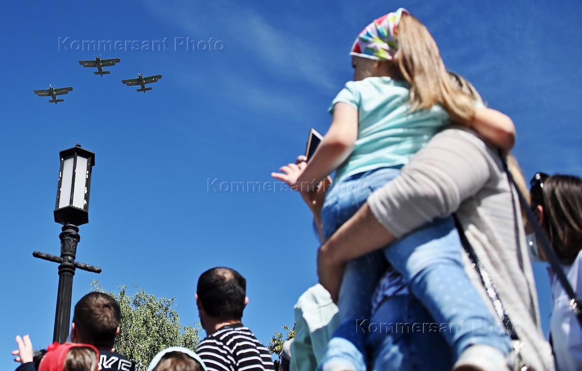 Военный парад, посвященный 75-летию Победы в Великой Отечественной войне на Соборной площади. Зрители на параде.