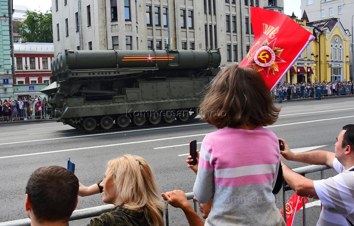 Военный парад на Красной площади, посвященный 75-й годовщине Победы в Великой Отечественной войне. Проезд военной техники по улице Новый Арбат.
