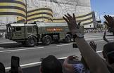 Военный парад, посвященный 75-й годовщине Победы в Великой Отечественной войне на Красной площади. Проход военной техники по Арбатской площади.