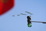Военный парад, посвященный 75-й годовщине Победы в Великой Отечественной войне на Красной площади. Воздушная часть парада. Пролет самолетов над Арбатской площадью.