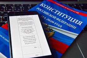 Онлайн голосование по поправкам в Конститиуцию России. Жанровая фотография. Бюллетень голосования на портале mos.ru на экране мобильного телефона.