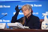 Общероссийское голосование по поправкам к Конституции России. День первый. Председатель Центральной избирательной комиссии (ЦИК) России Элла Памфилова во время прессконференции в Информационном центре ЦИК России.