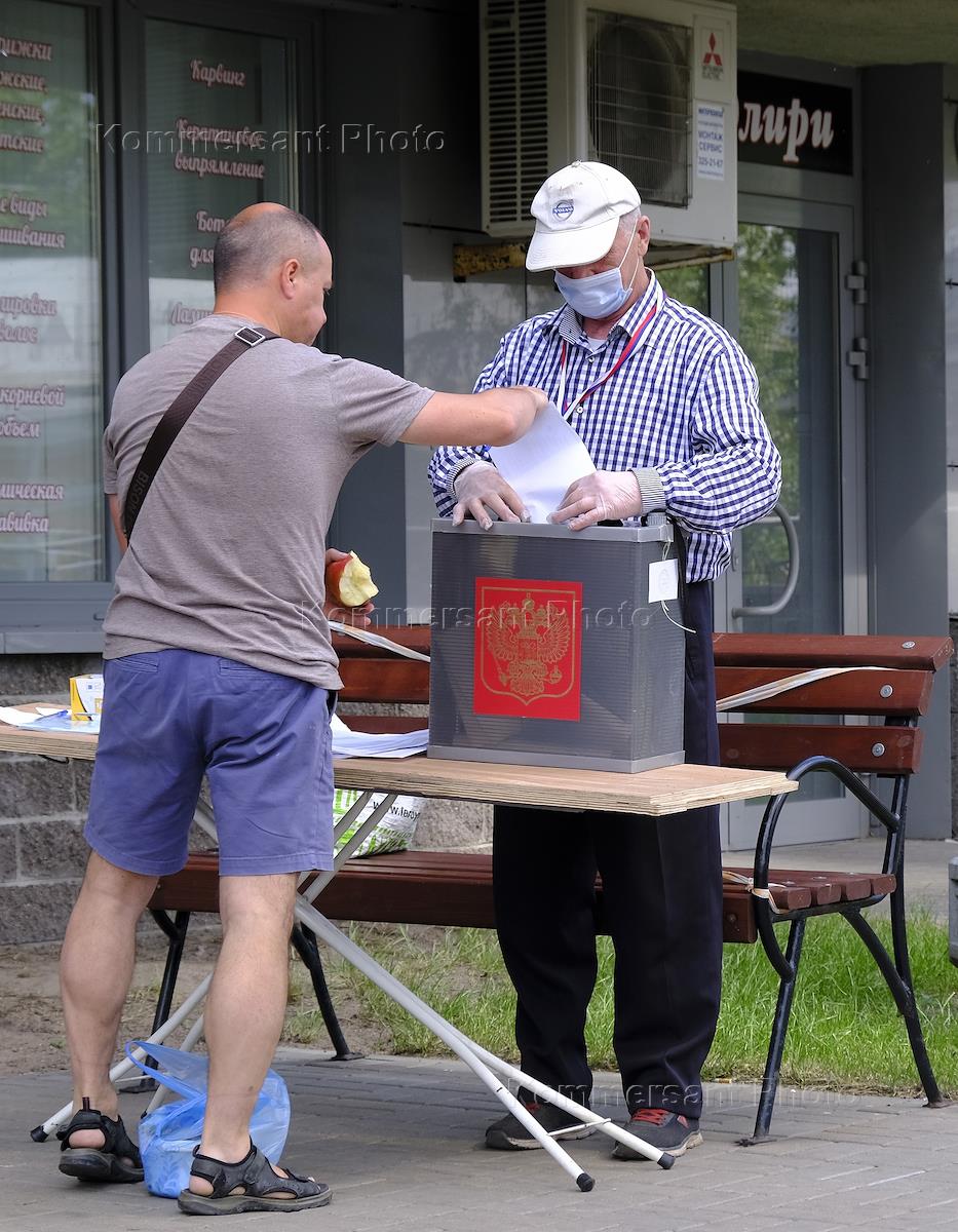 Общероссийское голосование по поправке к Конституции России. День первый. Работа участков во дворах жилых домов.
