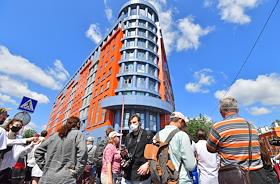 Sentencing in the case of embezzlement of public funds allocated to autonomous noncommercial organization "Seventh Studio" in the Meshansky District Court. Participants of a protest rally against court's decision in the Seventh Studio case protest on the square in front of the courthouse.