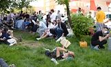 Вынесение приговора по уголовному делу о хищении бюджетных средств, выделенных автономной некоммерческой организации "Седьмая студия" в Мещанском районном суде. Участники митинга протеста против решения по делу "Седьмой студии" на газоне у здания суда.