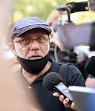 Вынесение приговора по уголовному делу о хищении бюджетных средств, выделенных автономной некоммерческой организации "Седьмая студия" в Мещанском районном суде. Участники митинга протеста против решения по делу "Седьмой студии" на площади у здания суда. Музыкант, продюсер Олег Нестеров (справа) среди протестующих.
