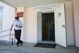 Процедура начала Общероссийского голосования по внесению поправкок в Конституцию России. Голосование на избирательном участке в поселке Водопадный Аксайского района. Сотрудник полиции у входа в участок.