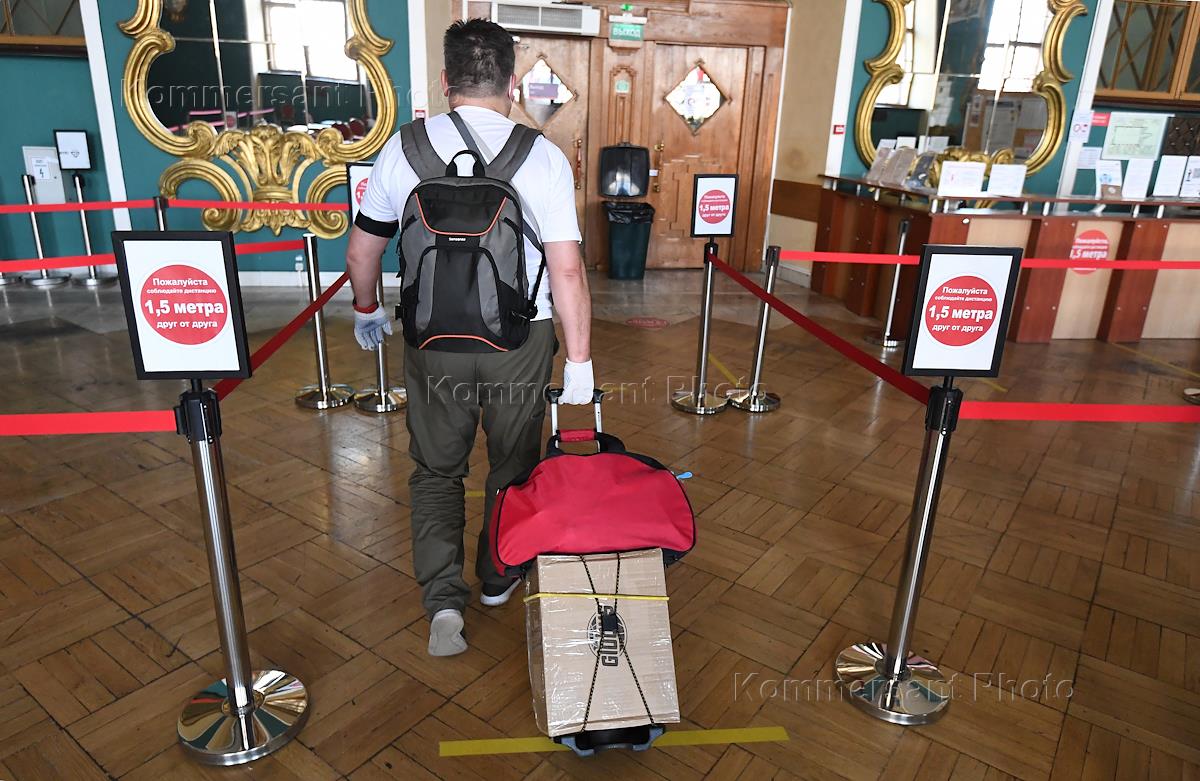 Общероссийское голосование по поправкам к Конституции России. Работа участковых избирательный комиссий (УИК). Сотрудники УИК на Казанском вокзале во время подготовки к голосованию.