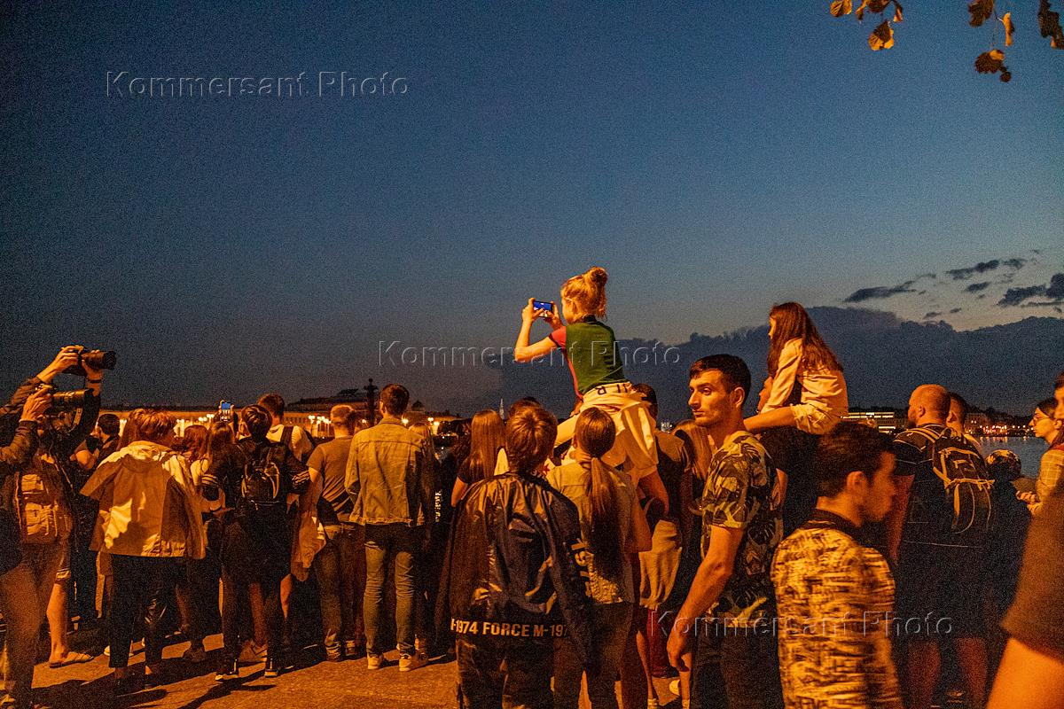 Праздник выпускников "Алые Паруса". Зрители на набережной во время праздника.