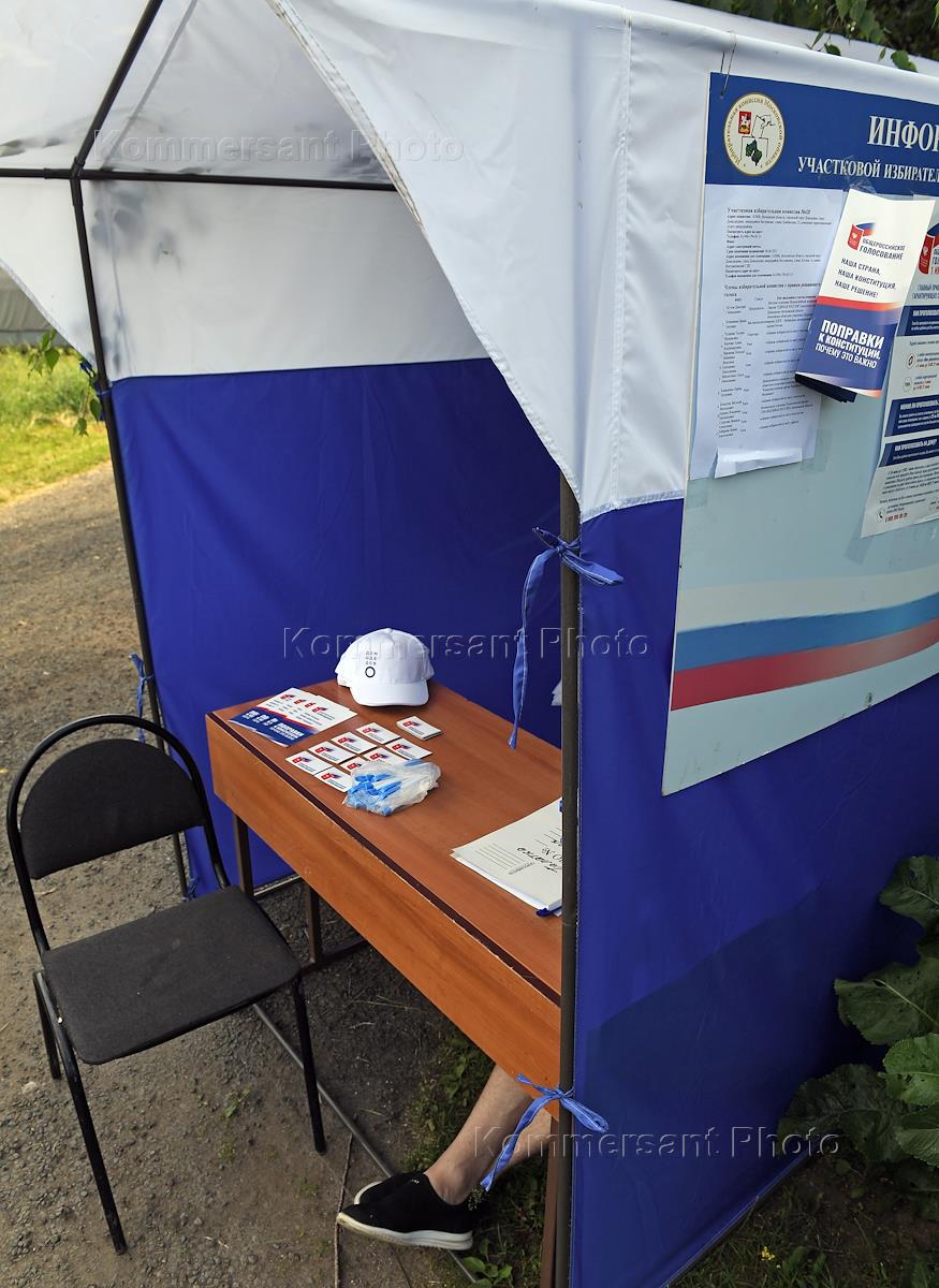 Общероссийское голосование по поправкам к Конституции России. Работа участковой избирательной комиссии № 428 в микрорайоне Востряково. Кабина для голосования.