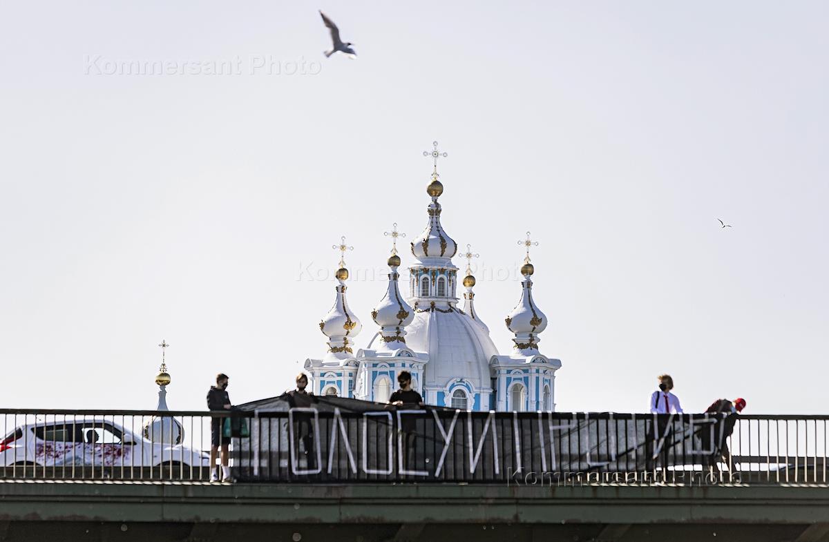 Участники акции протеста против изменения Конституции России.