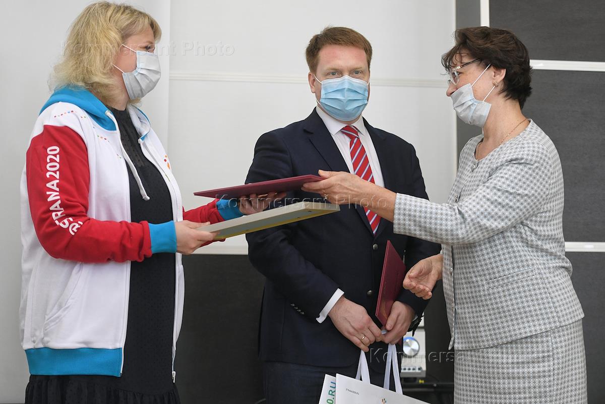 Встреча делегации Федеральной службы государственной статистики (Росстат) с представителями Ивановского государственного университета. Руководитель территориального органа государственной статистики по Ивановской области Светлана Клюзина (справа) и временно исполняющий обязанности ректора Ивановского государственного университета Алексей Малыгин (в центре) во время встречи.