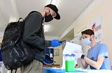 Общероссийское голосование по поправкам к Конституции России. Избиратели в медицинских масках на избирательном участке №1731 во время голосования.