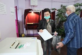Общероссийское голосование по поправкам к Конституции России. Люди на избирательном участке.