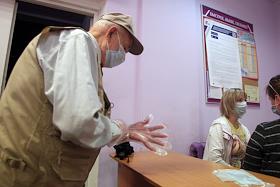 Общероссийское голосование по поправкам к Конституции России. Бесконтактное измерение температуры избирателю перед входом на избирательный участок.