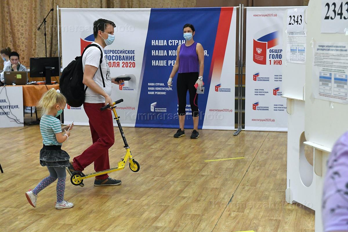Общероссийское голосование по поправкам к Конституции России. Работа избирательных участков. Избиратели во время голосования.