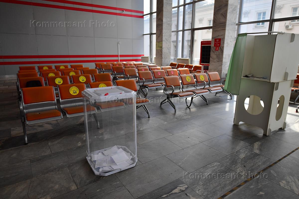 Общероссийское голосование по поправкам к Конституции России. Избирательный участок на Ленинградском вокзале.