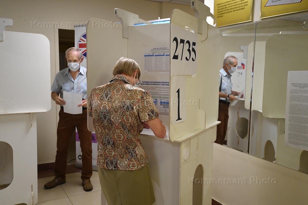 All-Russian vote on the constitutional amendments. Work of the polling station. People vote at the polling station.