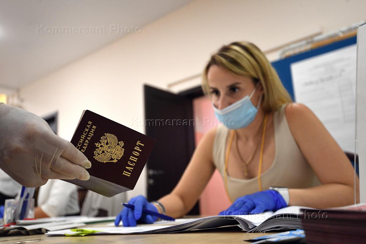 Общероссийское голосование по поправкам к Конституции России. Работа избирательного участка. Регистрация участика голосования.