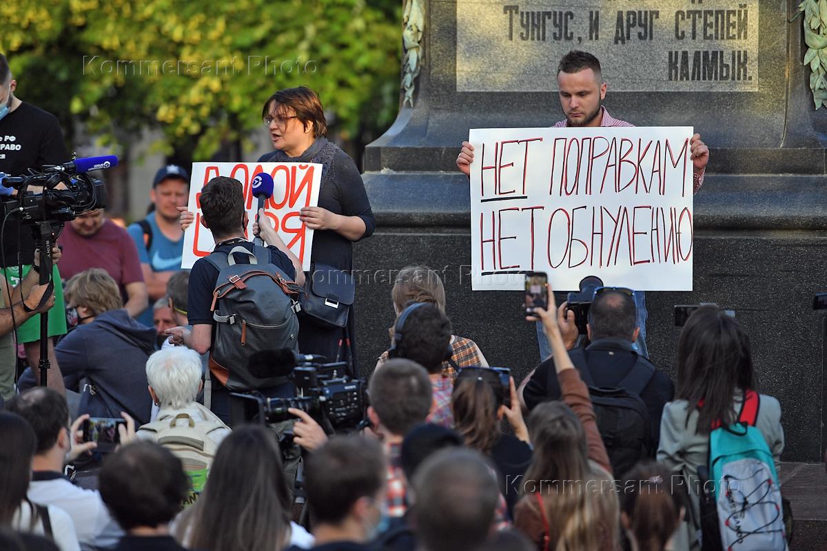 Общероссийское голосование по поправкам в Конституцию России. Последний день голосования. Несанкционированный митинг против поправок в Конституцию России прошел на Пушкинской площади.