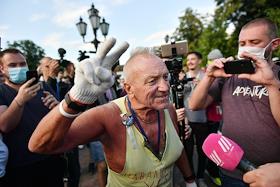 Общероссийское голосование по поправкам в Конституцию России. Последний день голосования. Несанкционированный митинг против поправок в Конституцию России прошел на Пушкинской площади. Руководитель движения "Декоммунизация" Дмитрий Цорионов (Энтео) в наручниках